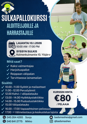Sulkapallokurssi Ylöjärvellä 10.1.-11.1.2026